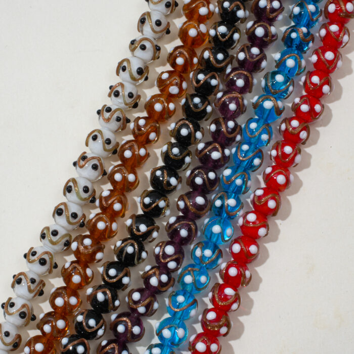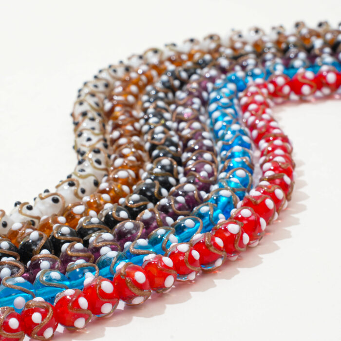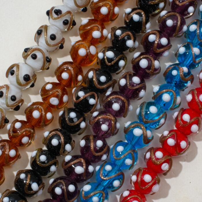 Inspired by the timeless art of Liuli craftsmanship, these gold foil raised-dot beads combine texture, transparency, and light.
