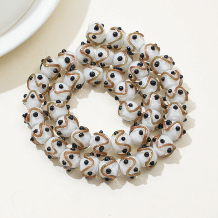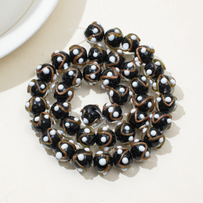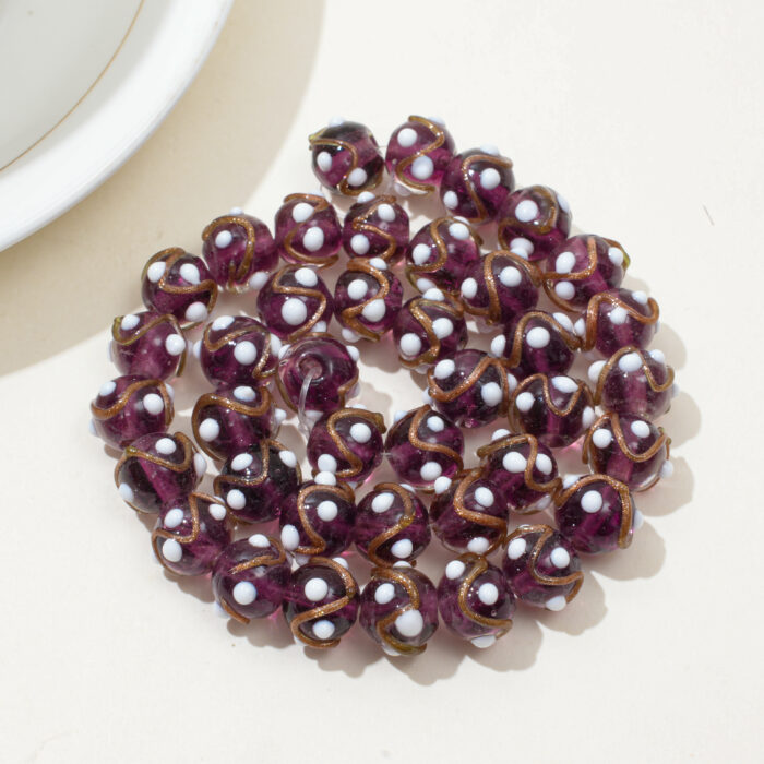 40PCS Gold Foil Raised Dot Liuli Beads – Handcrafted Crystal Glass Beads for Elegant DIY Jewelry